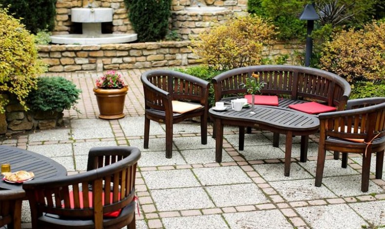 Belső kert kikapcsolódásra, szünetekre, kisebb fogadásokra a tavasz/nyári időszakban