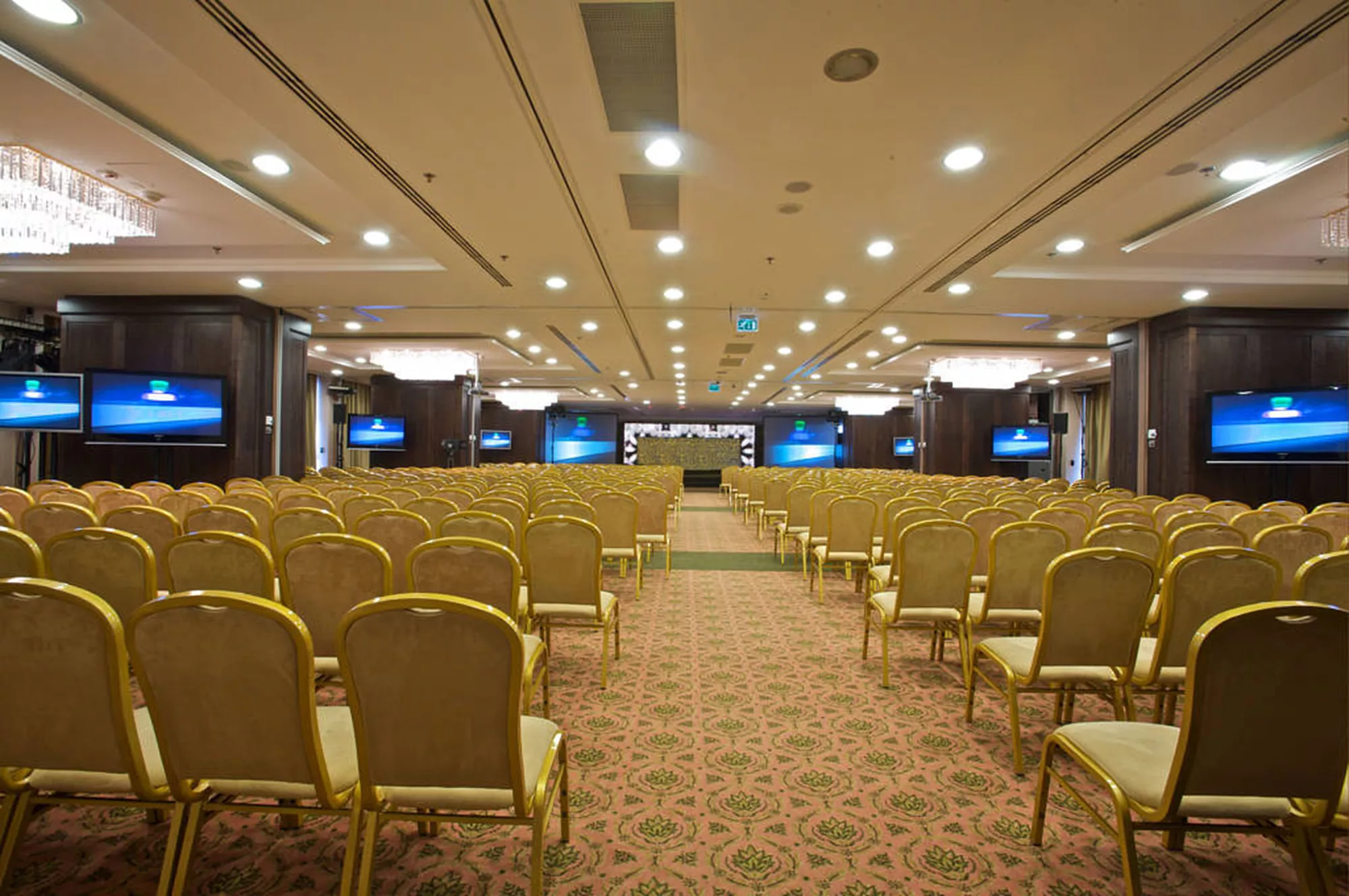 A legnagyobb terem kapacitása 550 fő. Mobil falak segítségével akár 15 különböző méretű szekcióterem is kialakítható. A szálloda legfelső, nyolcadik emeletén exkluzív rendezvények megrendezésére alkalmas, dunai panorámás teraszokkal bővíthető, 200 fő befogadására alkalmas bankett-terem található.