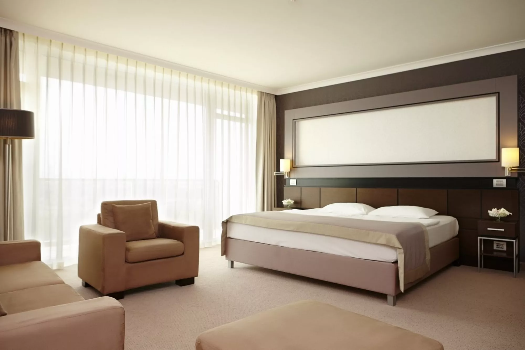 A budapesti Aquaworld szálloda szobáit valamint apartmanjait meleg színek, letisztult, modern formák, praktikum, kényelem és elegancia jellemzi.