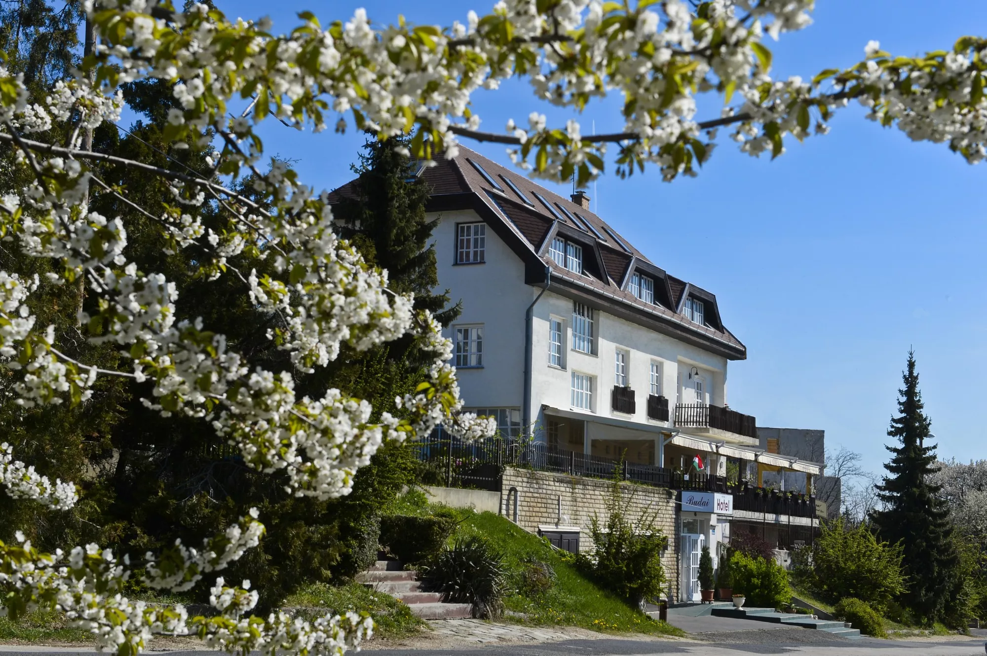 Csendes, nyugodt, tiszta levegőjű környezetben, a Széchenyi-hegy oldalában, zöldövezetben, várja Önt a rendezvényhelyszín.