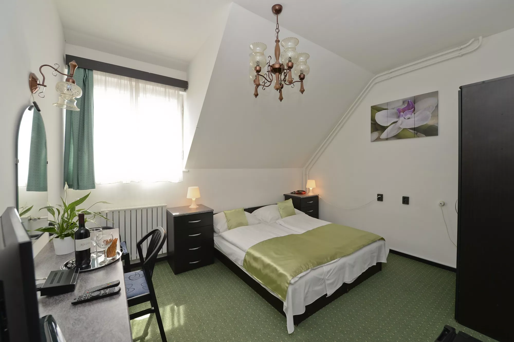 Ingyenes nyitott parkolóhely biztosított közvetlenül a hotel előtt. A zárt garázsba egyszerre 4 autó fér be (térítés ellenében).